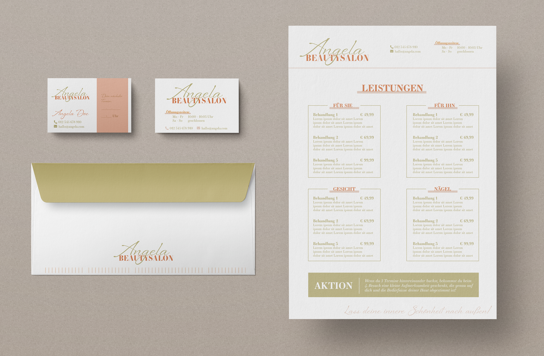 Da personenbezogene Daten bei Geschäftsdrucksorten zu sehen sind, verzichten wir im Sinne unserer Kunden darauf, diese hier zu zeigen. Stattdessen haben wir freie Arbeiten erstellt, die verschiedene Stilrichtungen darstellen und den Stellenwert eines einheitlichen Corporate Designs aufzeigen.